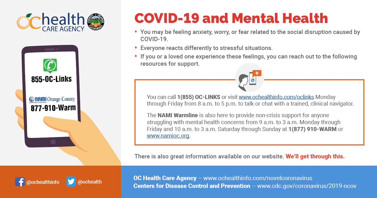 - On March 25th, OC Health is also extending hours for their call centers, to meet the needs of the community.
